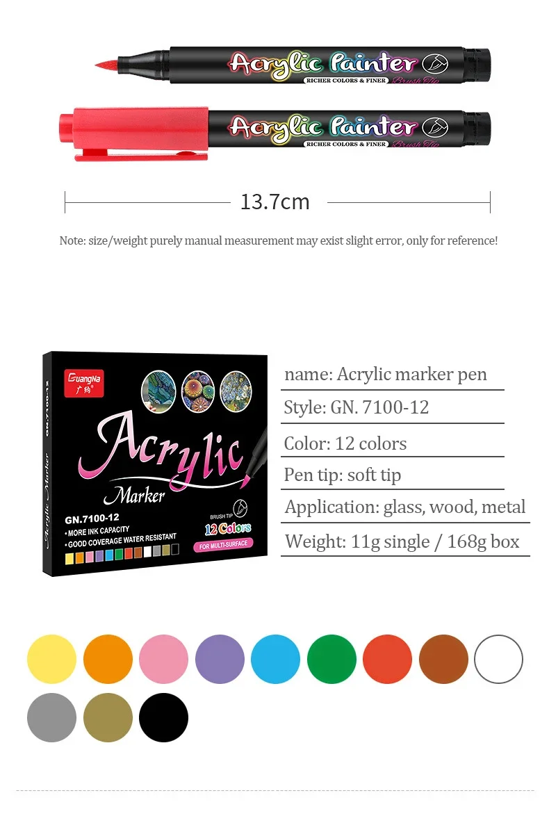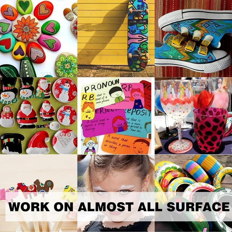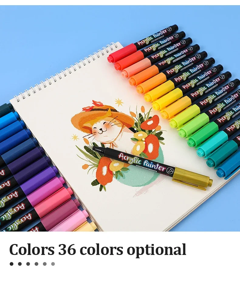 12-60Color Acrylic Paint Pens Set Markers Pen Painting DIY Art Supplies Hand-Painted Graffiti Ceramic Drawing Glass Fabric Canva